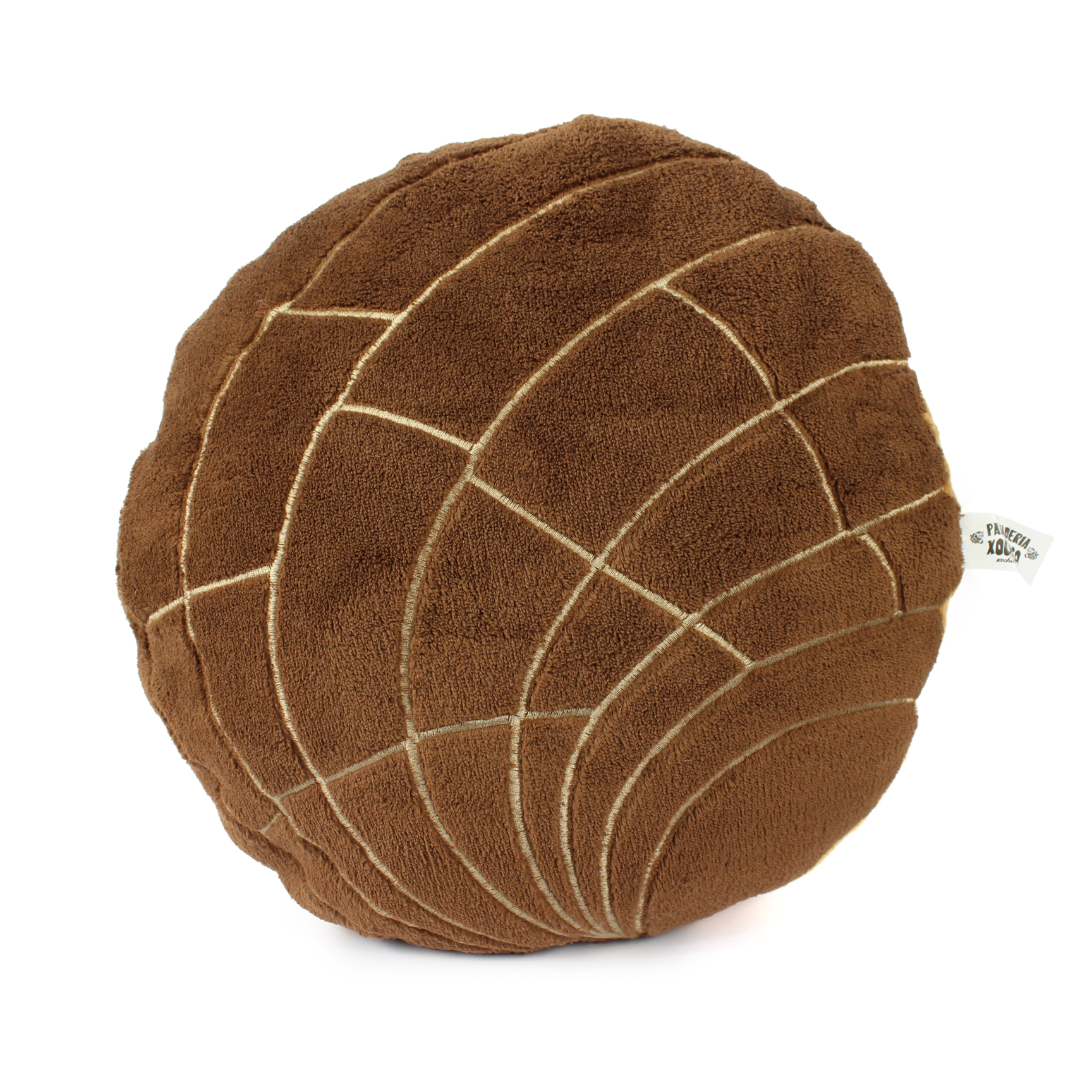 Plush pan dulce concha cushion. Soft terry fabric. Chocolate, strawberry and vanilla pillows come with bread-colored bottom.
