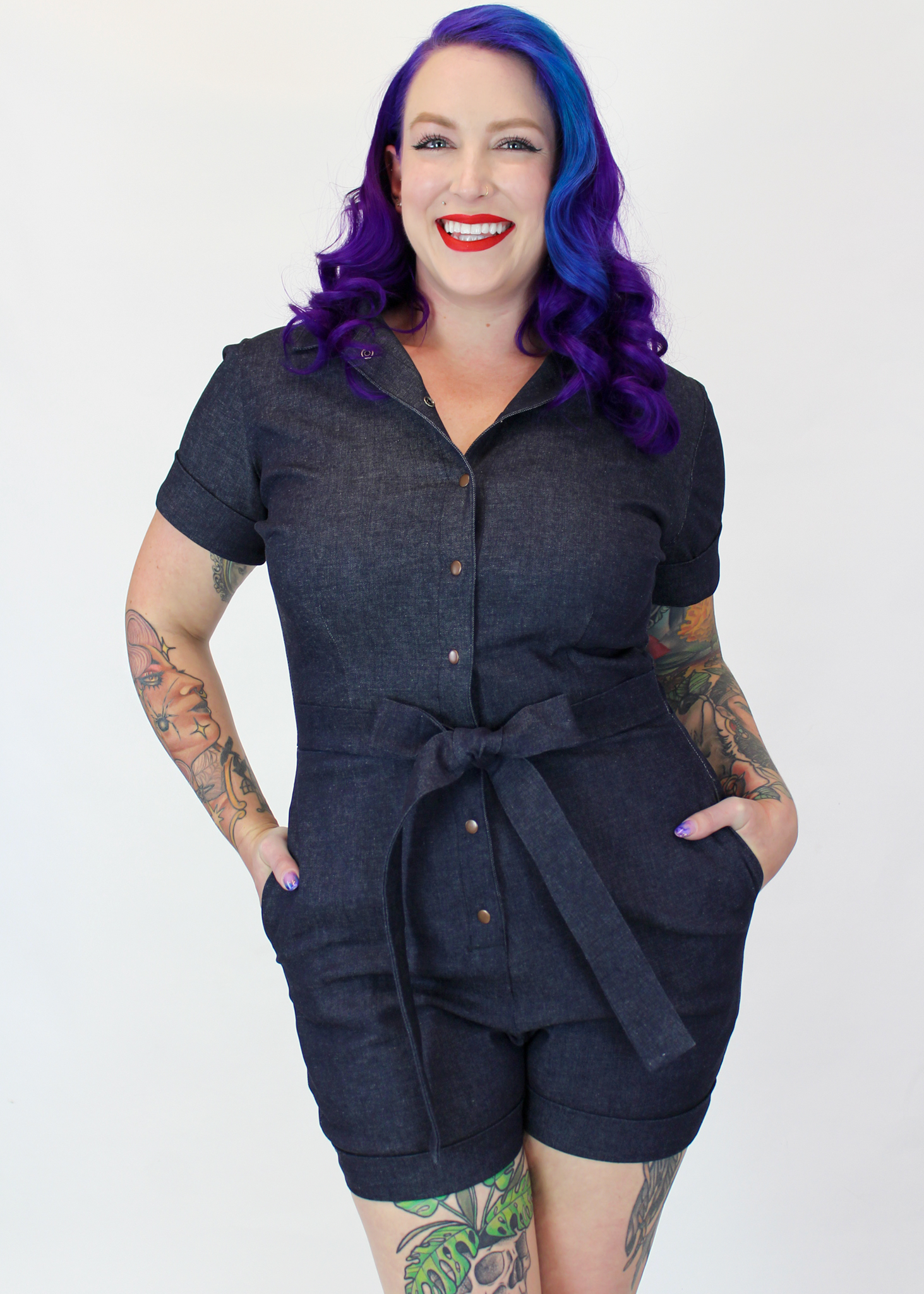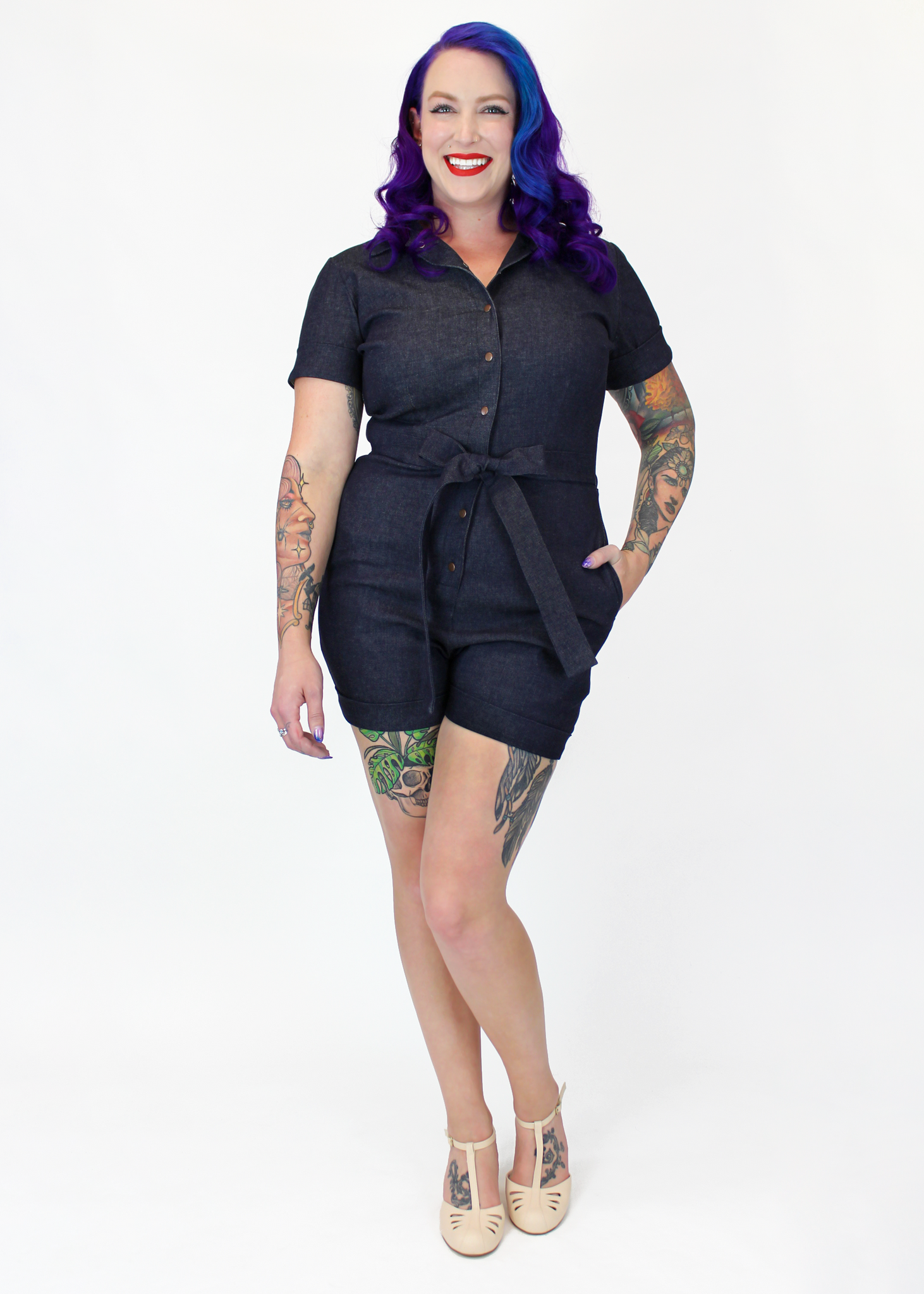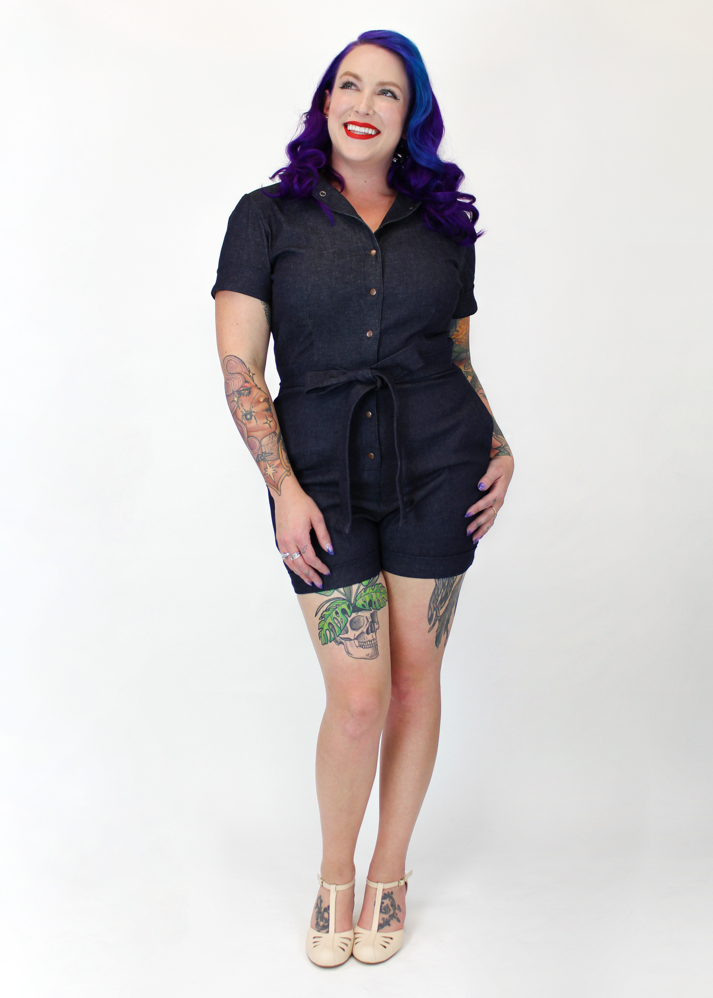 Just in time for the summer, this one piece jumpsuit with sleeves will be a fun addition to your wardrobe! The jumpsuit features a front snap up closure for easy dressing, long straps at the waist, a preppy collar, and two side pockets. Pair it with cute vintage inspired flats or pumps and you are ready to go!