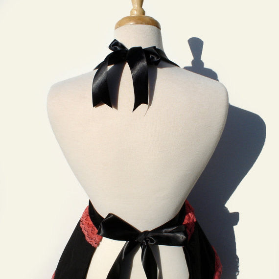 Please note we are no longer using the tiny black and white polka dotted fabric seen in pic as it is out of stock. We are currently using our regular small black and white polka dotted fabric seen in our other aprons.