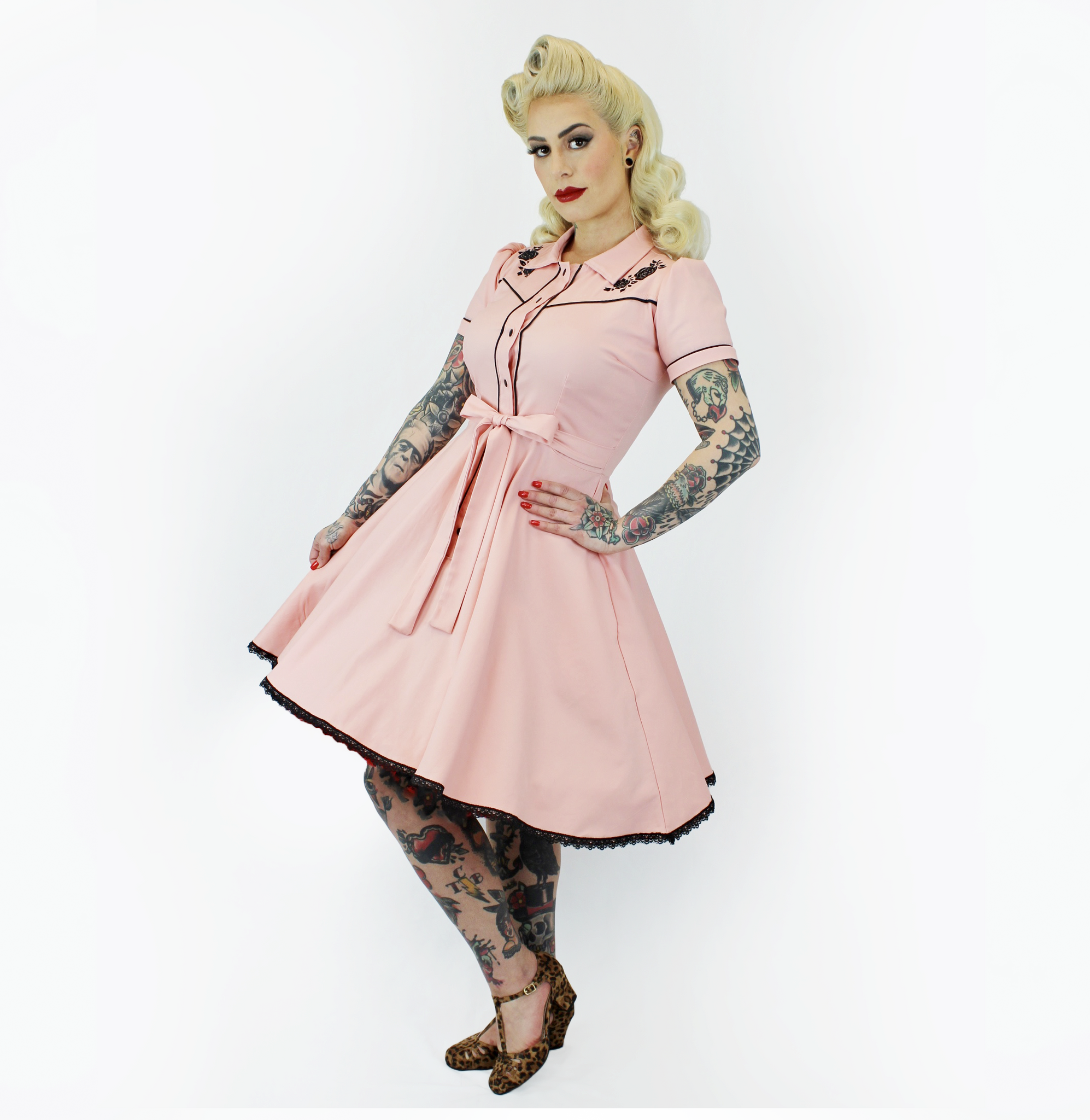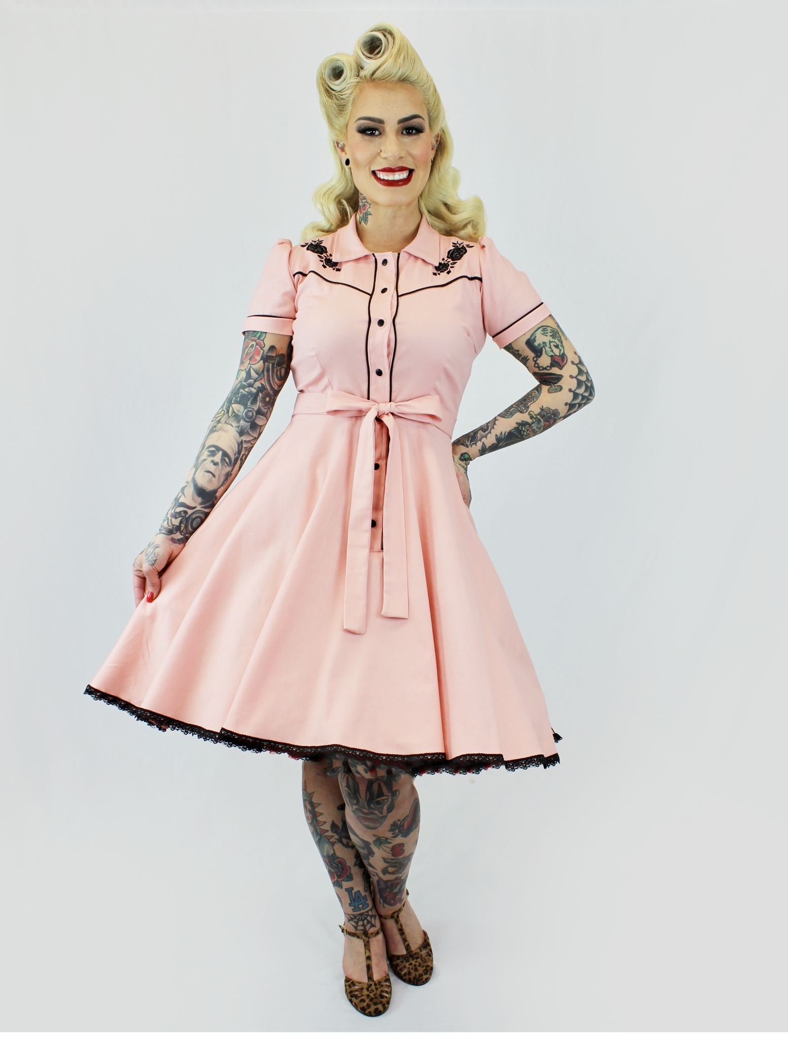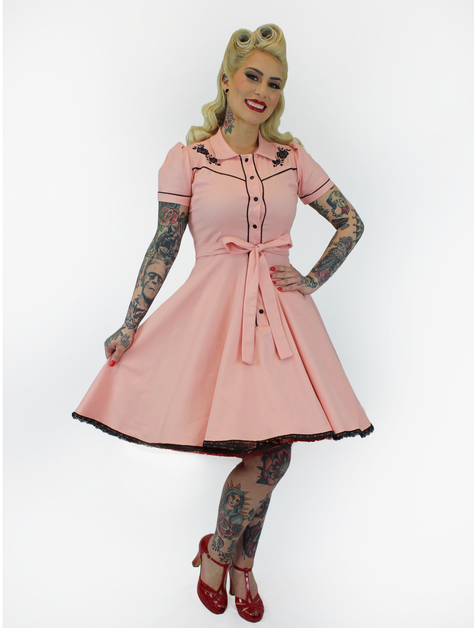Pink Black Rose Vintage Rockabilly Western Country Women Dress