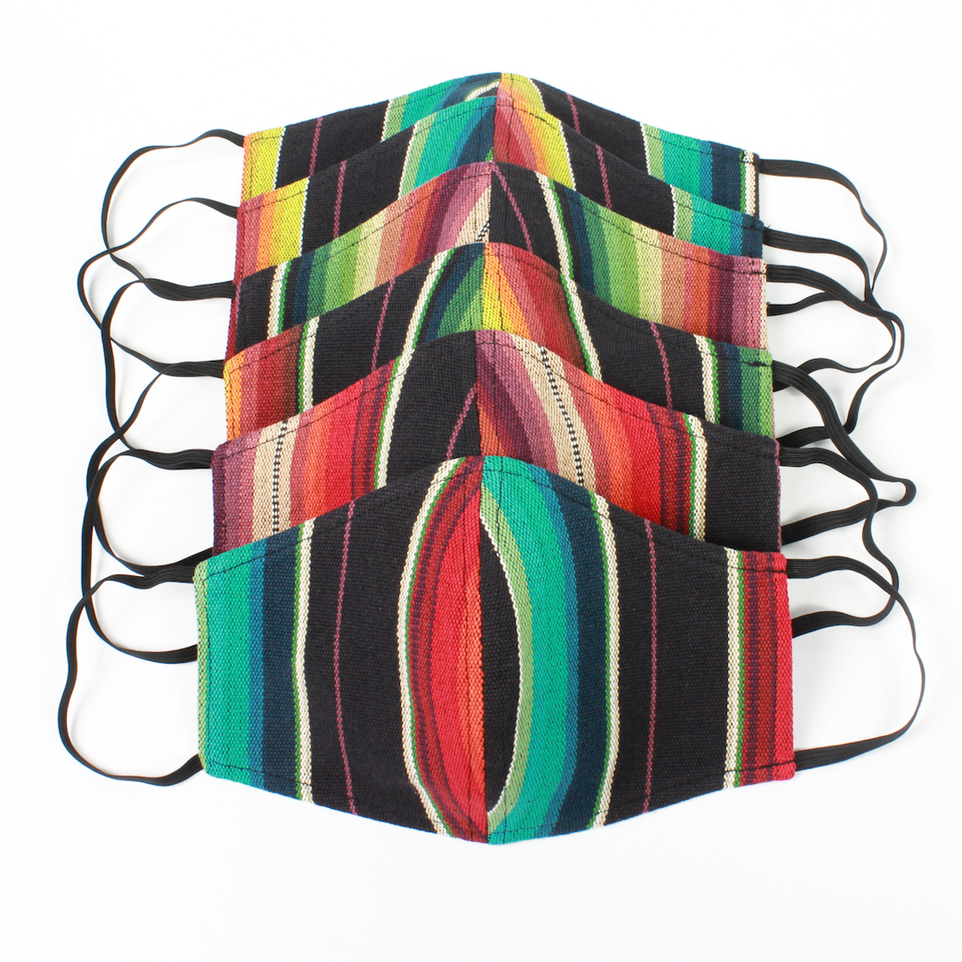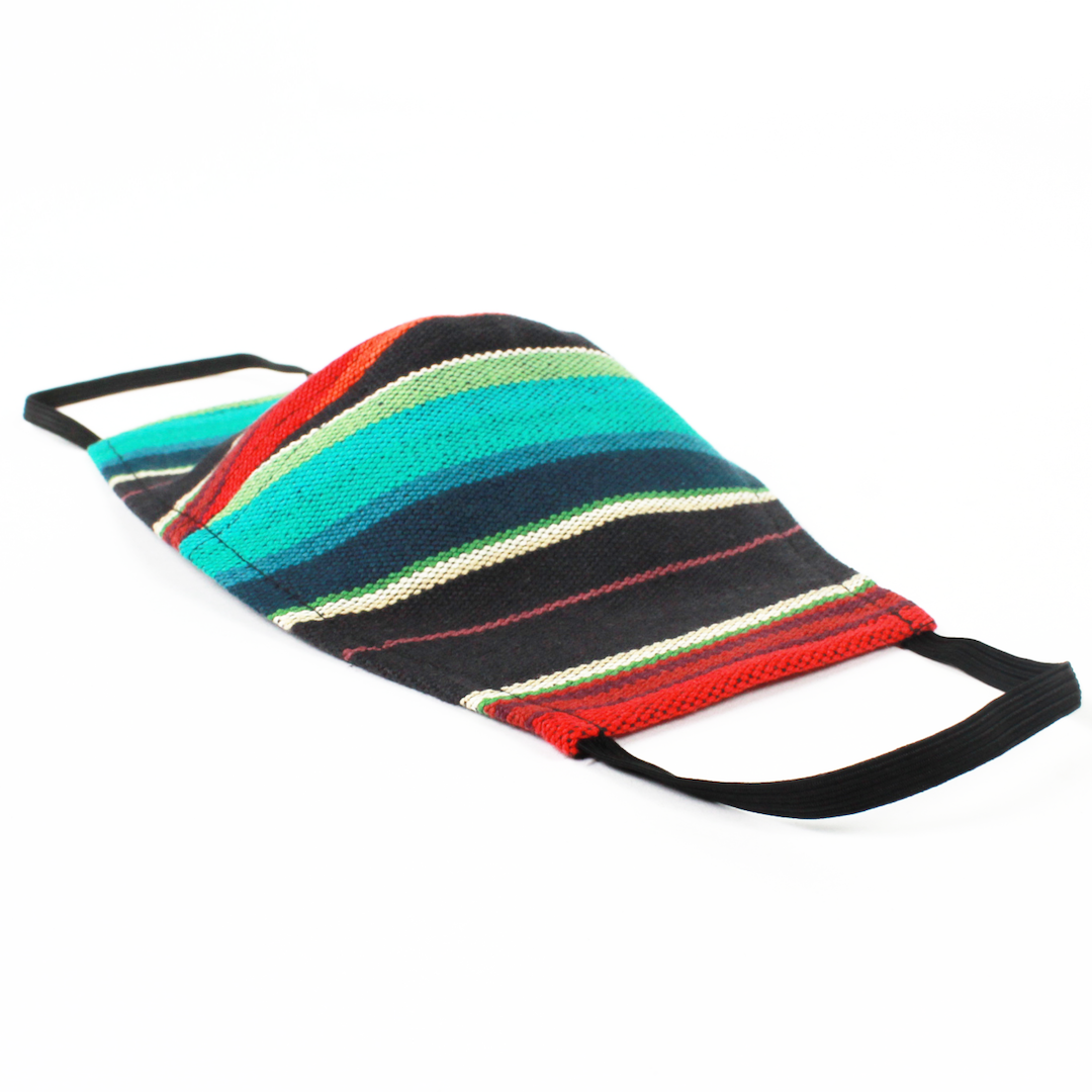 An assortment of on-trend serape inspired stripes come together in this colorful face mask. The serape print, known in Latin America as brightly colored woven material, showcases and retains the look of the woven fabric and brings color and pizazz to your outfit! Coordinate colors for extra pop!